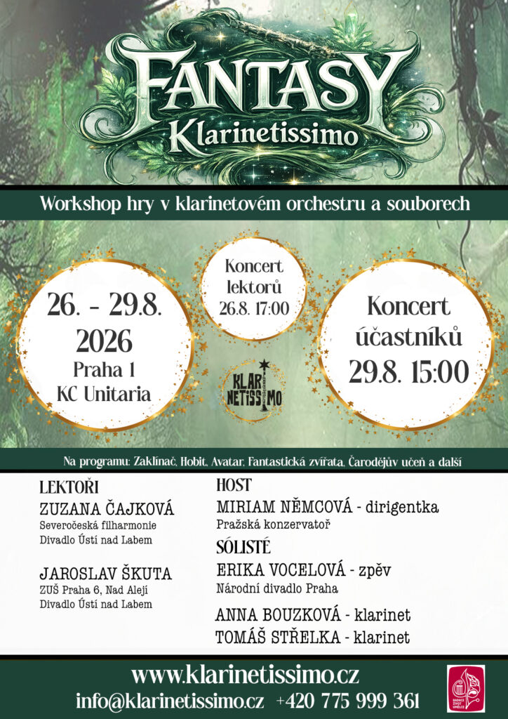 Těšíme se na společné tóny a nezapomenutelné dny plné klarinetové hudby zakončený slavnostním koncertem v krásném sále v centru Prahy.